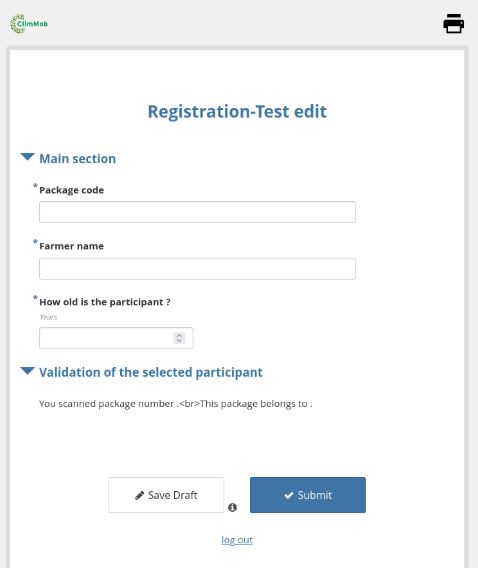 In the case of the Registration Form, you need to replace the QR code (used in ODK Collect) by a code that follows the pattern: projectownerusername-packagenumber-projectcode~