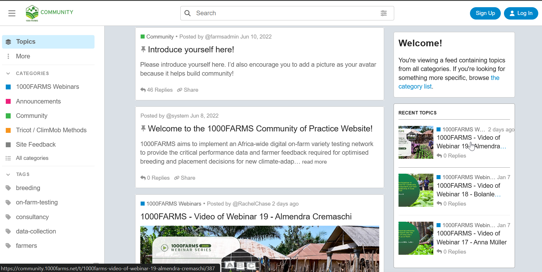 The Community of Website is found at https://community.1000farms.net